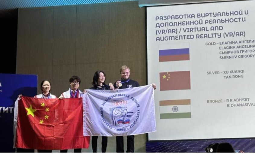 “银牌!我们在喀山拿到了银牌!”9月27日,新媒体技术学院收到从俄罗斯传来的喜讯——在2024金砖国家职业技能大赛(金砖国家未来技能和技术挑战赛)虚拟增强现实开发赛项国际决赛中,学院师生组成的代表队斩获国际银牌、中国区金牌。这场国际赛事,吸引了来自俄罗斯、中国、印度、白俄罗斯、哈萨克斯坦等多个国家的参赛队伍同竞技。