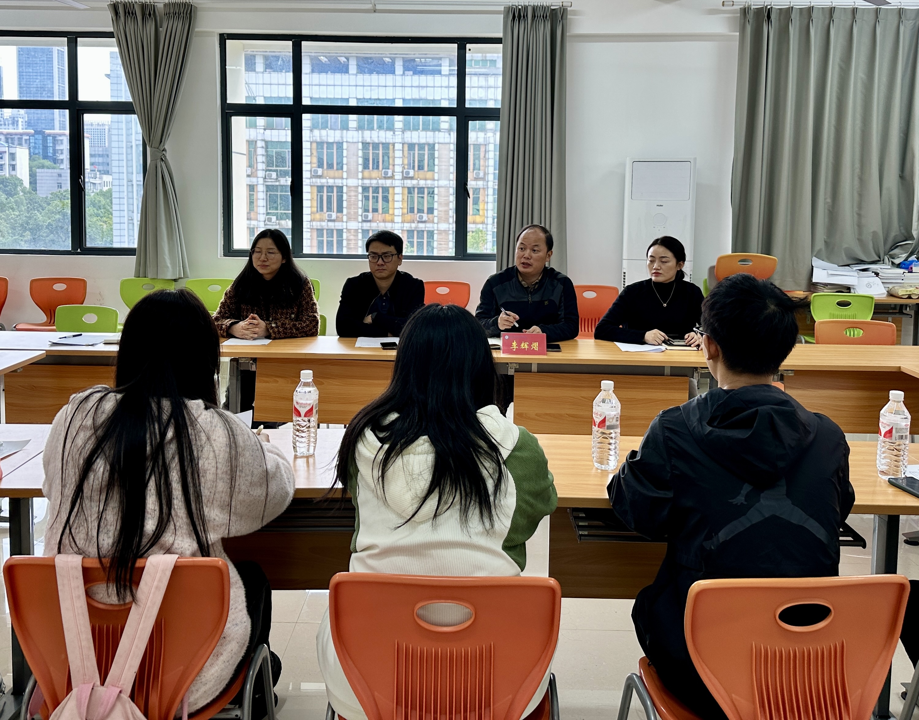 10月23日下午,新媒体技术学院本学期第一场“院领导接待日”在理实一体化教学楼502教室举行。院长李辉熠及学工办主任、教研室老师共同接待了学生代表。