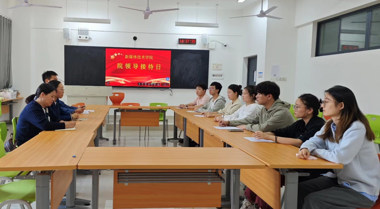 10月30日,新媒体技术学院举行本学期第二场“院领导接待日”,围绕党建工作这个主题,党总支书记陶新艳、副书记徐丹红及专职组织员与学生代表面对面交流,倾听学生代表的建议和意见。