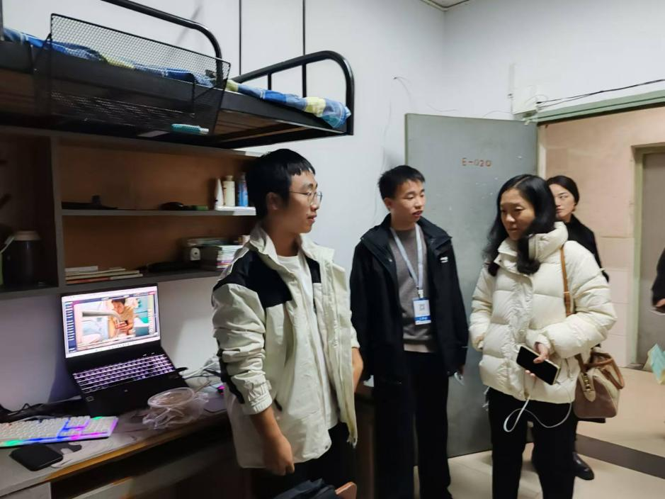 学院领导、辅导员深入各栋公寓楼的学生宿舍,从整洁的床铺到有序的书桌,从设施的完好到用电的安全,仔细查看每一间学生宿舍的情况。在安全检查过程中,学院领导、辅导员与学生们进行了亲切的交流,了解学生的学习进度和生活需求,认真聆听学生对校园生活的感受和建议,特别对学生因公寓改造而需寄存行李的情况进行了耐心解释,并对学生行李寄存的具体方式进行了全面细致的摸排。学生纷纷表示,老师们在寒冷冬夜走访学生宿舍,温暖人心的话语,细致入微的措施,切实可行的建议,让他们感受到了学院的贴心关怀和学习生活的明确指引。