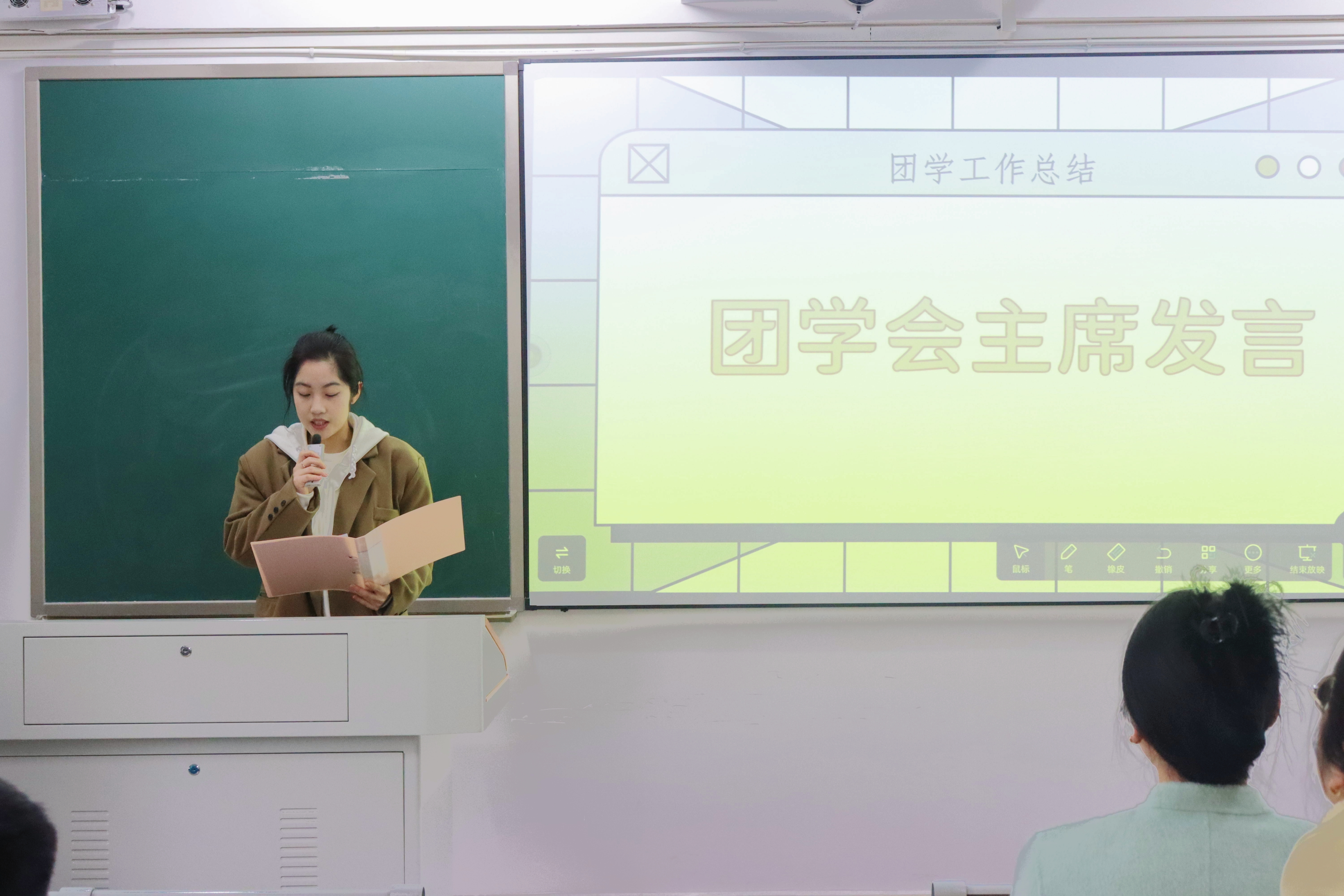 团学会工作总结视频播放后,团学会主席苏钰涵进行学期工作总结,对下学期工作作出规划她提到,学院团学会将持续深化组织建设,定期开展内部培训与交流活动,提升成员综合素养与团队协作能力在活动策划上,紧密围绕校园文化与学生需求,创新形式与内容,增强活动的吸引力与影响力,进一步发挥团学会在校园中的积极作用,助力同学们全面发展。