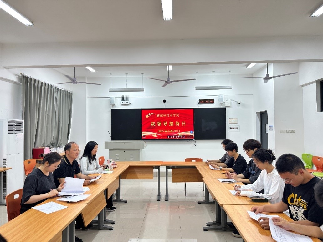 为进一步密切学院领导与师生员工的联系,及时听取师生员工的意见建议,5月20日下午,新媒体技术学院院长李辉熠主持2025年首场“院领导接待日”,数字媒体技术专业教研室主任、虚拟现实技术应用专业教研室主任参与此次接待日活动。