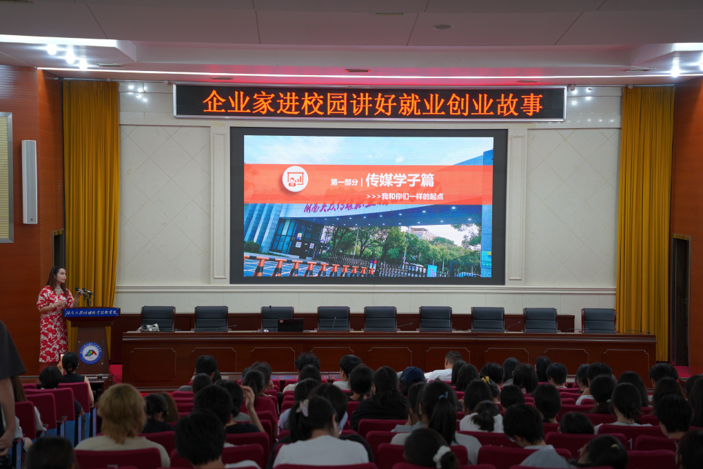 为深化落实省委“七个一”创业扶持政策,畅通学校与创业企业的人才对接,赋能青年就业创业,2025年6月17日,学校招生就业处联合新媒体技术学院,邀请新媒体技术学院优秀校友谭玉芳作为讲座嘉宾,在学校学术报告厅开展“企业家进校园讲好就业创业故事”活动,此次活动吸引了学校350余名师生参与。