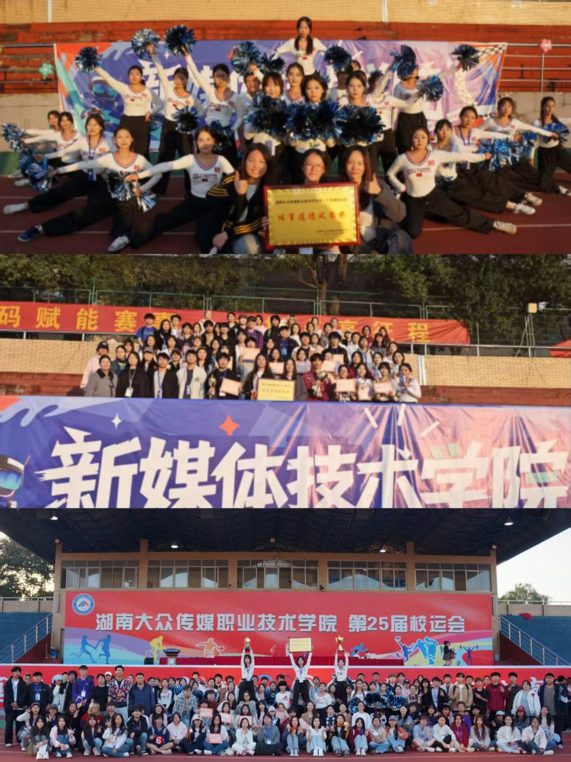 为丰富校园文化生活,强健学生体魄,弘扬团队精神,2025年11月13日至14日,湖南大众传媒职业技术学院第二十五届运动会在田径场隆重举行。新媒体技术学院师生齐聚赛场,共同见证运动健儿们在竞技场上的速度与激情、拼搏与荣光。