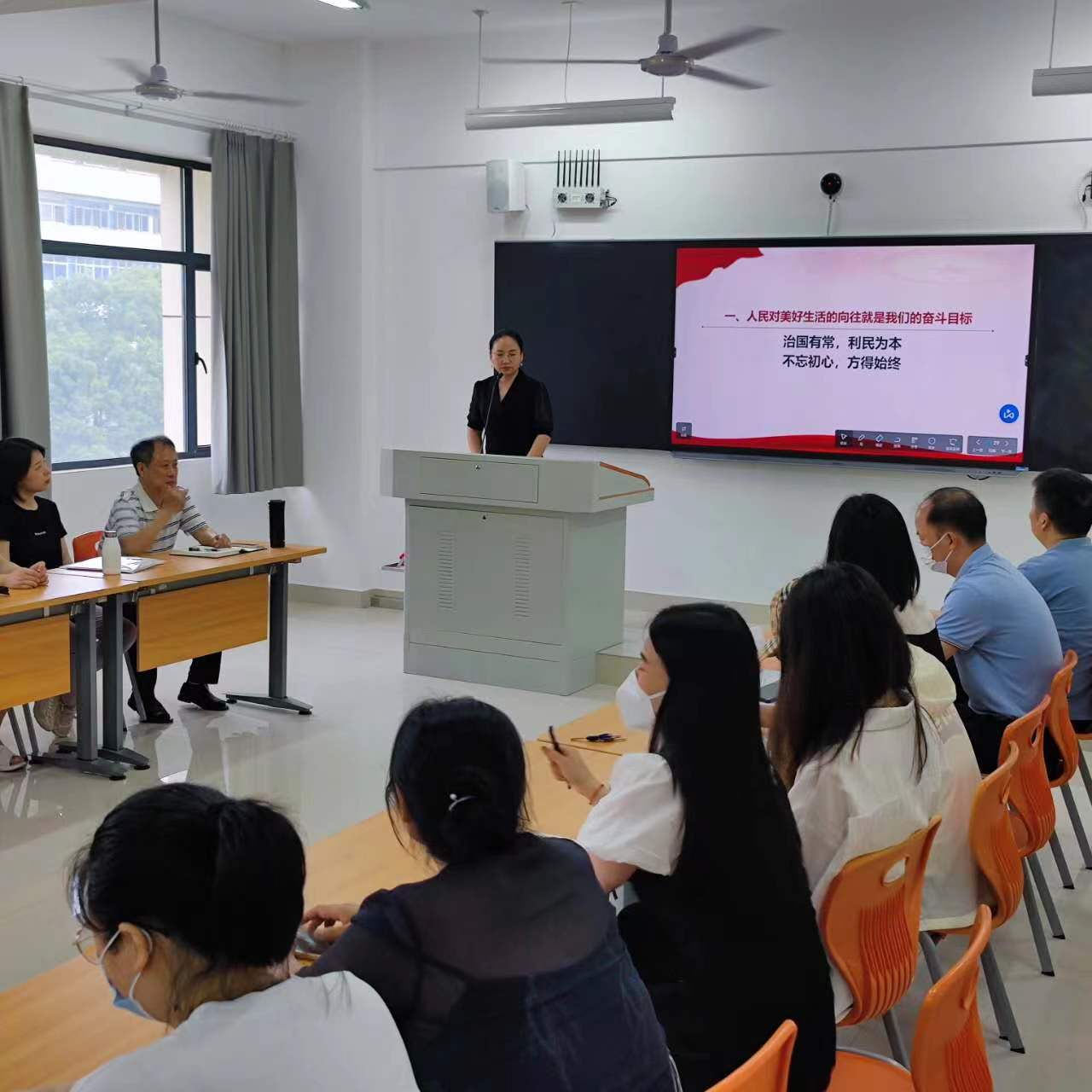杨莎以“以人民为中心是新时代坚持和发展中国特色社会主义根本立场“为题,分为永远把人民对美好生活的向往作为奋斗目标、把党的群众路线贯彻到治国理政全部活动、始终依靠人民创造历史伟业等篇章,为全体党员讲授党课。