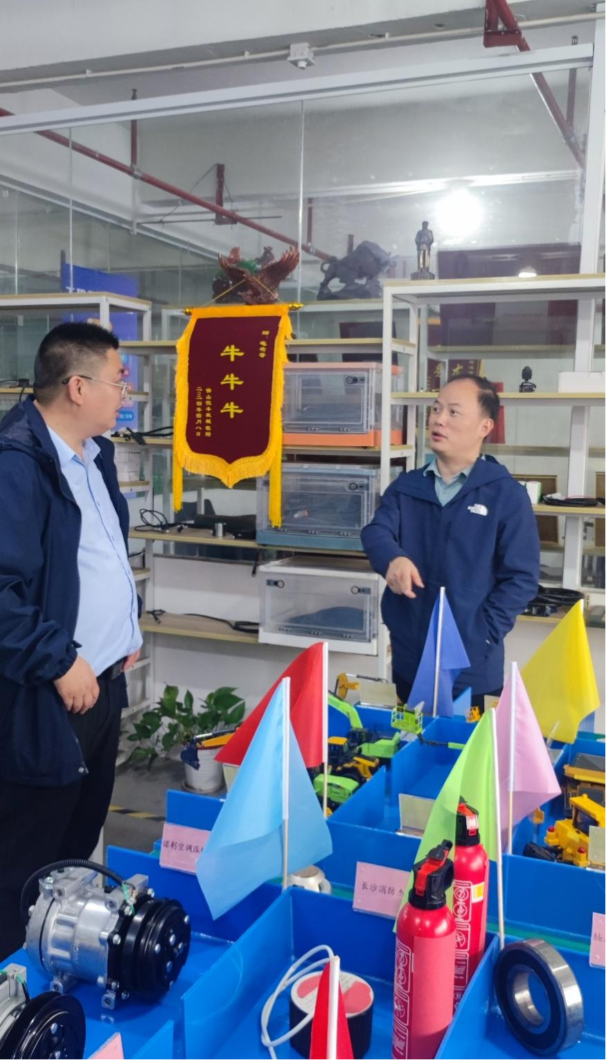 李辉熠院长一行在企业负责人陪同下,实地参观了公司的生产环境与产品,直观感受了公司的技术实力与市场潜力,还着重了解了公司的人才需求和岗位要求。双方就虚拟现实技术在智能制造行业的应用,特别是5G+XR在操作培训、远程作业等方面的生产实践进行了探讨,并就未来学生实习、就业等问题进行了交流。