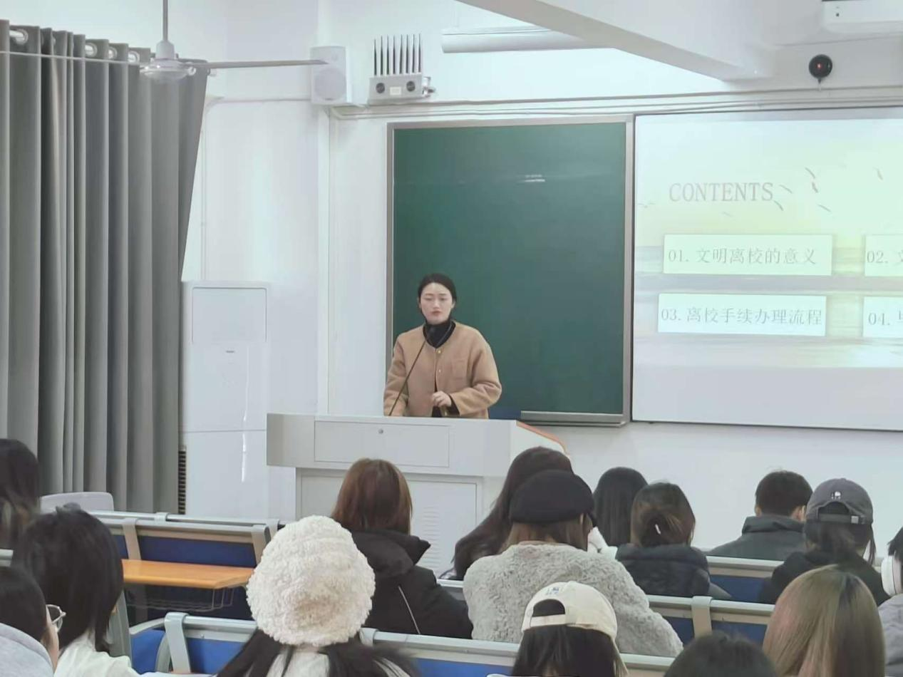学工办主任和2025届毕业班辅导员针对2025届毕业生顶岗实习相关文件资料和就业文件资料的填写、上传等注意事项做了详细讲解,并针对毕业生实习和应聘期间的安全注意事项做了细致的安全教育和提醒。