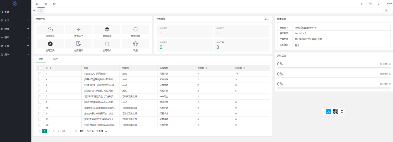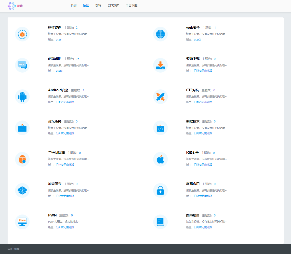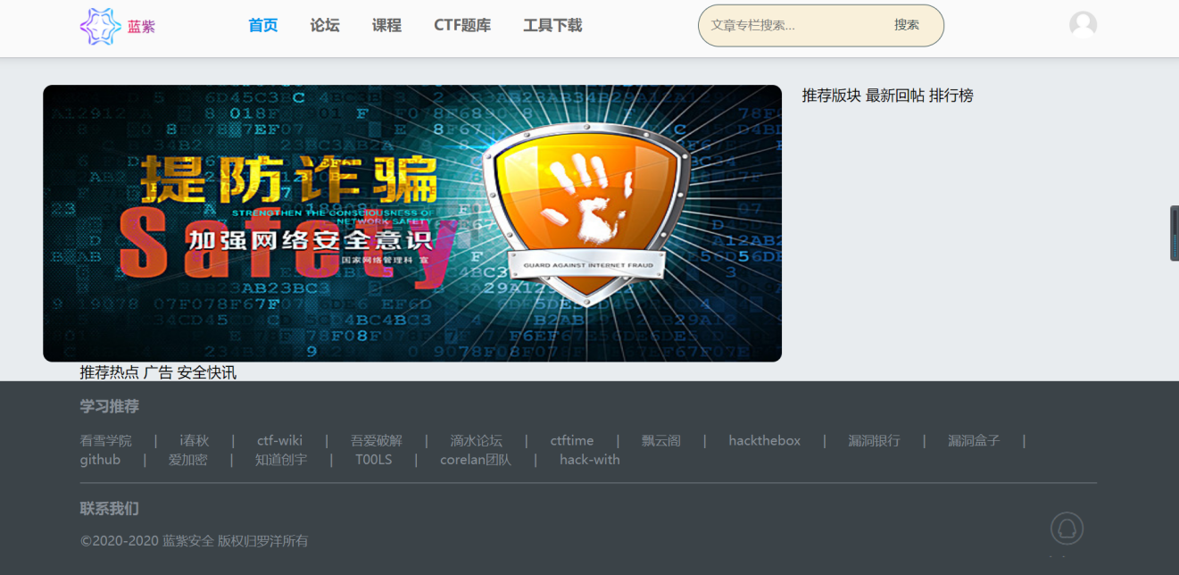 “蓝紫安全”论坛网站搭建的目的是给广大网络安全技术爱好者和开发人员提供一个进行学习、交流、讨论,共同进步的平台。