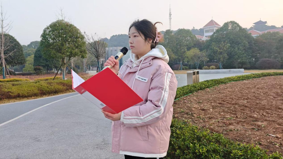 学院团学会轮值主席张静萱以“以初心为炬,赴青春新程”为题发表国旗下演讲。她回顾历代仁人志士坚守初心的精神传承,随后结合团学会的实践成果,鼓励大家于期末备考中踏实奋进。她同时展望了下学期提升服务能力的计划,并号召全体同学将青春奋斗融入祖国数字化建设,以实际行动践行青年担当。