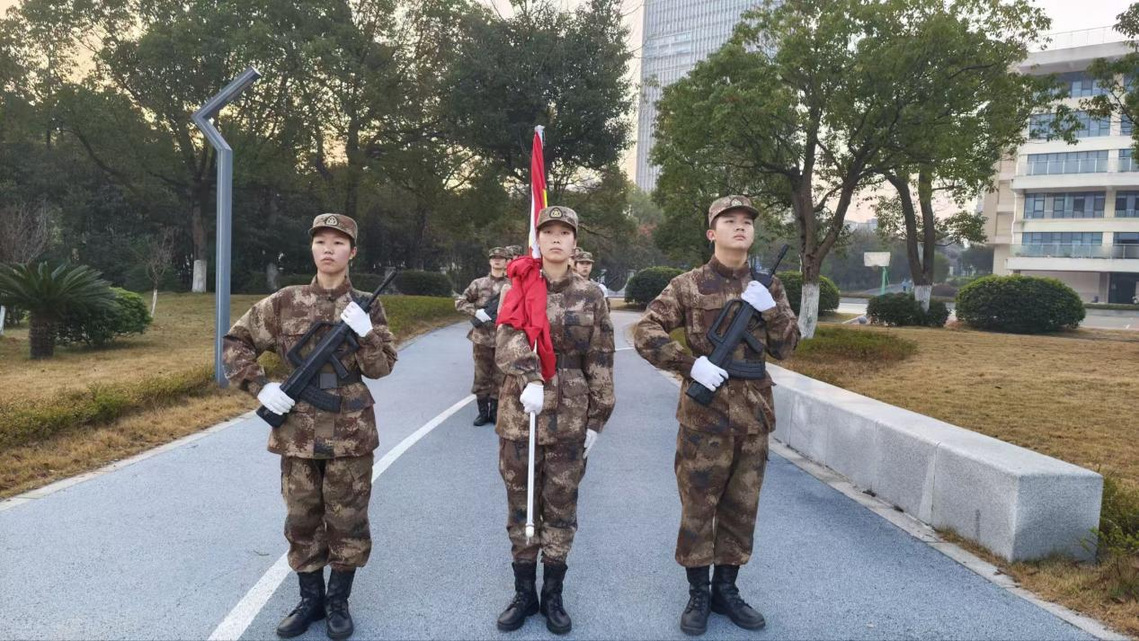 仪式由团学会轮值主席王丽霞主持。国旗护卫队步伐铿锵,护卫国旗庄严入场。在激昂的国歌声中,五星红旗迎着晨光冉冉升起,全体师生肃立凝视,行注目礼。